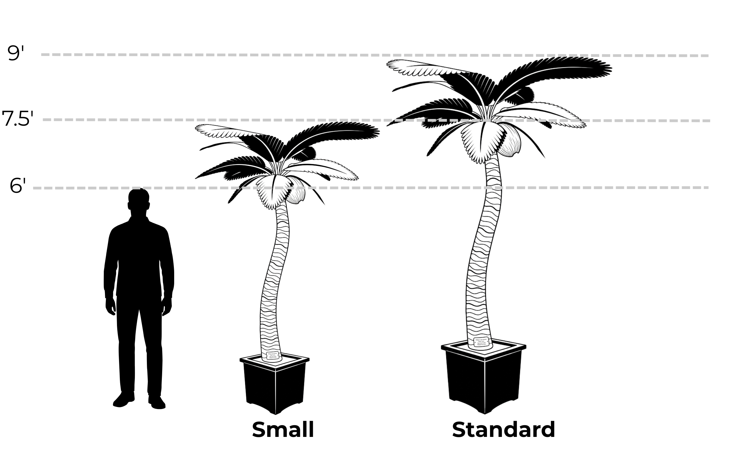 Our planter palms make it easy to bring a tropical look to spaces where in-ground installation is not ideal. They are a flexible option for patios, entryways, pool areas, and commercial spaces that need visual impact with more placement freedom.